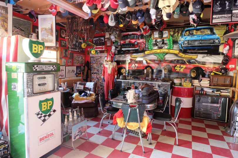 This collection, which takes up three garages at Dave’s Ainslie home, exists because of a true passion for the sport. It includes hundreds of die-cast racing models, Peter Brock memorabilia, oil bottles, and bowsers; in fact, if it was anything associated with motor sport, it’s there.